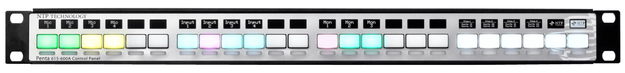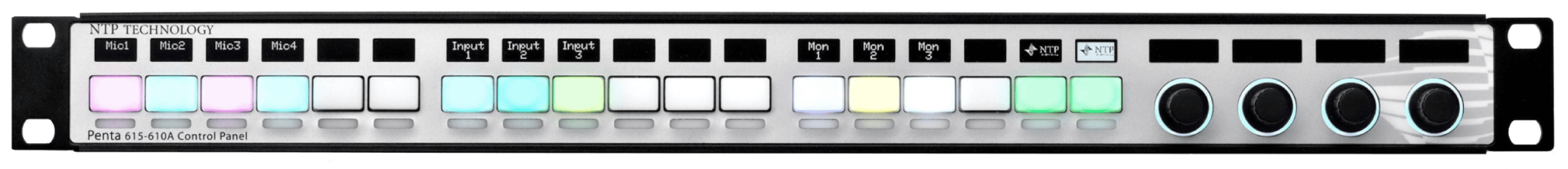 18 user-programmable keys, 4 rotary encoders and displays